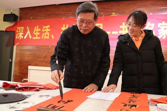 1月23日,河北省文联、河北省文艺志愿者协会邀请省会知名书画家在石家庄市北新街社区日间照料中心开展“迎新春、送春联”活动。中国书协副主席、河北省书协主席、河北省文艺志愿者协会常务副主席刘金凯出席活动并现场为居民书写春联。