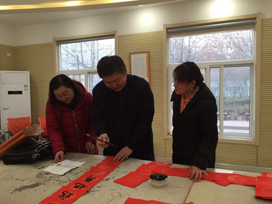 “为响应党和国家的号召,贯彻落实习近平总书记在中国文联第十次文代会上的讲话精神,在鸡年到来之际,我们来到最美社区为居民写春联送福字,送来新春的祝福,一方面丰富了社区文化活动,另一方面通过展示书法家的作品,进而推动我省文艺事业的繁荣发展。今后省书协会继续创新活动形式,开展更多深入生活,扎根人民的活动。”河北省书协主席刘金凯说道。