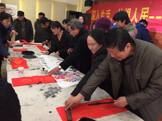 “丹凤呈祥龙献瑞,红桃贺岁杏迎春”,在活动现场,省会知名书法家们挥毫泼墨,一幅幅饱含墨汁“味道”的春联写给了北新街社区的居民,送出了书法家们对群众的新春祝福,营造了浓厚的社区文化氛围。
