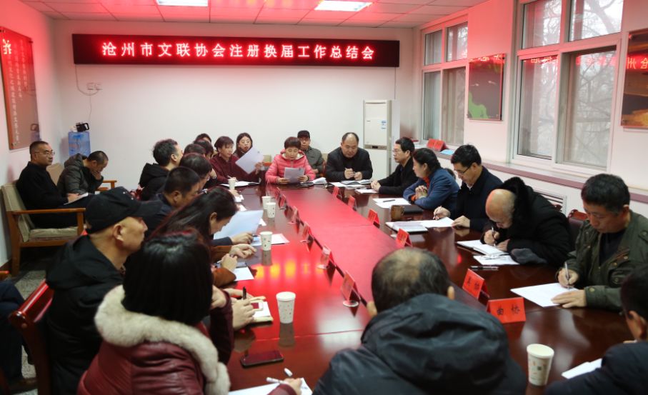 12月16日,沧州市文联召开协会注册换届工作总结会议,各协会主席、市文联机关全体工作人员参加会议。沧州市文联党组书记、主席王月周出席会议并讲话。