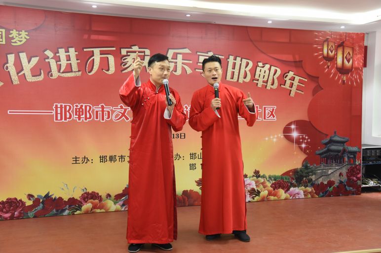 1月13日下午,从农林二社区传来悠扬的歌声,邯郸市文联主办的“我们的中国梦”—文化进万家乐享邯郸年邯郸市文艺界走进农林二社区慰问演出在这里举行,艺术家们给社区居民送上了一场精彩的艺术盛宴。邯郸市文联党组成员、副主席李琦、赵砺砺,邯山区委常委、宣传部长胡建英,各协会文艺家,社区群众200多人观看了演出。