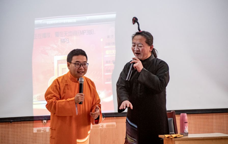 随后,大家欢聚一堂,共同欣赏志愿者带来的精彩的歌曲《爱在天地间》、双簧《拍电影》等文艺节目表演。谢峰和冀雪丽表演了保留剧目二人台小戏《借钱》,国家一级演员、中国戏剧梅花奖、中国文华奖双奖获得者李萍为大家表演了晋剧《打金枝》选段和戏歌《戏比天大》,精彩的表演赢得了大家阵阵掌声。