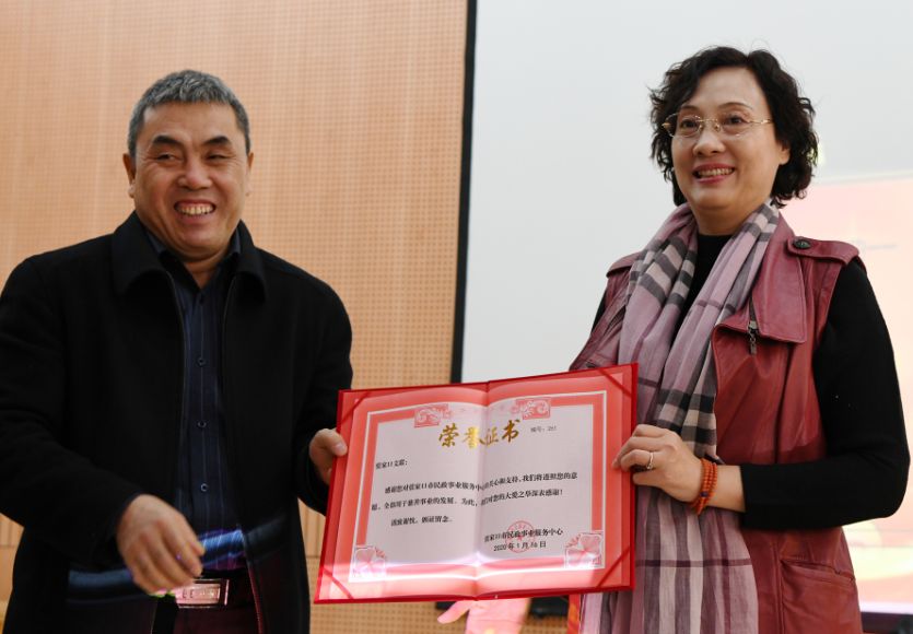 演出结束后,市文联党组的领导向民政事业服务中心赠送了春联,给孩子们赠送了节日的礼物,民政事业服务中心院长李泓君向文艺志愿者们表示衷心地感谢,并为市文联及全体文艺志愿者颁发了荣誉证书。