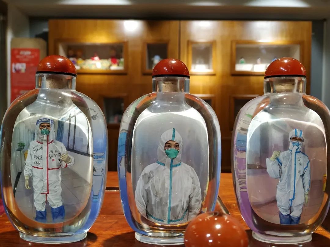 冀派内画是国家级非遗,肖像又是内画中创作难度最大、技艺要求最高的题材。为表达对抗疫英雄的敬意,衡水市文联组织冀派内画传承人王自勇等内画艺术家为衡水支援武汉的医护人员设计内画肖像,经过一个多月紧张创作,在五四青年节前夕完成了68件“国礼级”内画肖像鼻烟壶作品的创作,并在习三内画艺术博物馆举办“致敬最美逆行者”内画展。