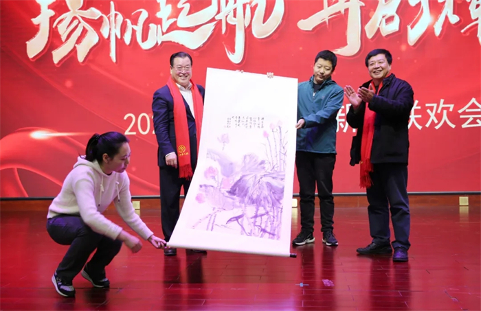 刘月卯代表省文联各艺术家协会给大家拜年,致以新春的问候和美好的祝福,并现场赠送对联。同时,省文联援藏干部翟民青从西藏阿里发来了新春祝福视频。