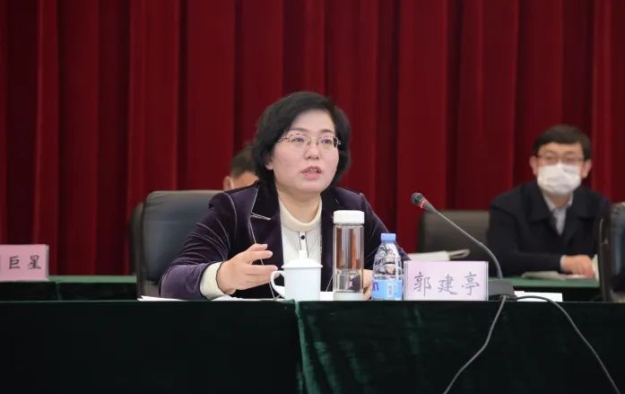 郭建亭在讲话中指出,在过去的一年里,石家庄市文艺界坚持以习近平新时代中国特色社会主义思想为指导,在市委的坚强领导下,围绕中心、服务大局,在党史学习教育、庆祝建党百年、打赢疫情防控歼灭战、建设现代化国际化美丽省会城市中发挥了激励人民自信、增强人民力量、振奋人民精神的重要作用,切实推动了文艺事业繁荣发展。她指出,2022年是党的二十大召开之年,也是石家庄市经济总量过万亿、实现弯道超车的支撑之年、关键之年,文艺界的责任更加重大、使命更加光荣。她要求广大文艺工作者要始终以习近平新时代中国特色社会主义思想为指导,坚持守正创新,开拓文艺事业新境界;要始终聚焦“做人的工作”这一核心任务,坚守人民立场,书写文艺发展新篇章;要始终围绕“精品创作”这一中心环节,坚定文化自信,精心打造“文化石家庄”新形象,努力开创文艺工作新局面,以优异成绩迎接党的二十大胜利召开。