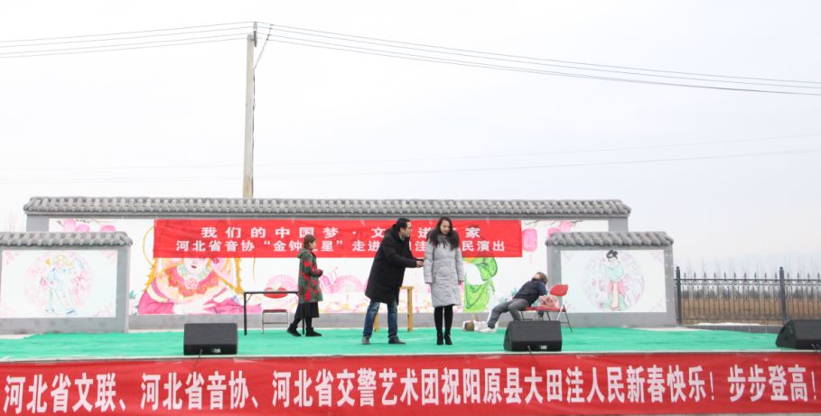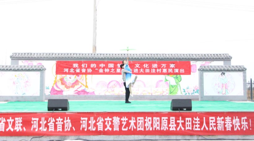2020年1月5日,“我们的中国梦”——文化进万家 河北省音协“金钟之星”走进大田洼村惠民演出在张家口市阳原县大田洼村村民广场举办。此次活动由河北省文联和河北省音协联合主办,河北交警艺术团承办。河北省文联一级巡视员柴志华,人事处处长石景春,组联处处长张占芳,机关党委专职副书记常黎青,省文联驻阳原县大田洼村第一书记赵云旺参加活动并为村民送去春联和鲜花等慰问品。