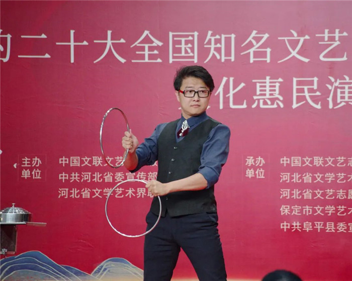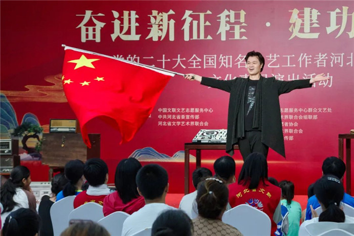 “你看党旗飘扬的方向,有我唯一铁打的信仰,全力以赴春天的梦想,大道直行迎接新的曙光……”翩翩的舞者、嘹亮的歌声,演出在一曲歌舞《党旗飘扬的方向》中拉开序幕。参加演出的文艺志愿者个个精神抖擞、情绪激昂,热情洋溢的表演引得现场观众掌声雷动。歌曲《小白杨》《天耀中华》等唱响了人民凝心聚力、踔厉奋发创造美好生活的昂扬斗志,河北梆子《好一派泱泱黄河》等倾注了燕赵儿女对这片山河厚土的深情,相声《美好新时代》在欢声笑语中诠释着国家富强、民族振兴、人民幸福的“中国梦”。魔术、故事讲述、戏曲等各种不同类型的文艺作品接连登台,令观众目不暇接。演出在歌伴舞《灯火里的中国》中拉下帷幕,现场的老老少少激动地沉浸其中,久久不肯离场。