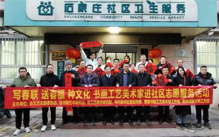 为深入学习宣传贯彻党的二十大精神,深入贯彻落实中国文艺志愿者协会关于2023 年元旦春节期间开展“文艺进万家 健康你我他”新时代文明实践文艺志愿服务活动的通知要求,按照省文联关于开展“我们的中国梦——文化进万家”活动安排,以文艺志愿服务的形式迎接癸卯新春的到来,为社区群众营造喜庆、祥和的节日氛围,1月14日下午,省文艺志愿者协会组织书画文艺志愿服务小分队,到石家庄市新华区泰安社区开展了“我们的中国梦 文化进万家——写春联 送春福 种文化”新时代文明实践文艺志愿服务活动,省文艺志愿者协会秘书长盖金平以及10名文艺志愿者参加活动。