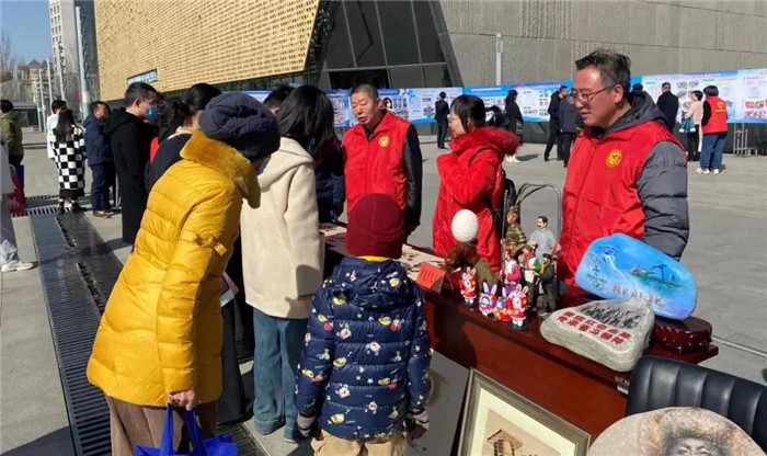 张家口市民间文艺家协会到市图书馆开展学雷锋文艺宣讲志愿服务活动,为群众进行石头画、传统面塑、烙画工艺等民俗文化展示及讲解。