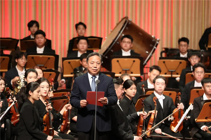 韩新安在开幕式音乐会上致辞。他表示,即将开启的中国音乐小金钟首届全国声乐展演,是贯彻落实党的二十届三中全会精神,立足事业发展,深化改革创新,拓展工作局面的重要举措,旨在促进不同地区青少年声乐选手之间的学习与交流,提升全国声乐教学表演水平,激发更多青少年对声乐艺术的热爱,为新时代新征程中国音乐事业繁荣发展选拔储备一批优秀后备人才。期待每一位选手都能在这个舞台上展现出最好的自己,用音乐传递真挚的情感,用艺术点亮生活的色彩。