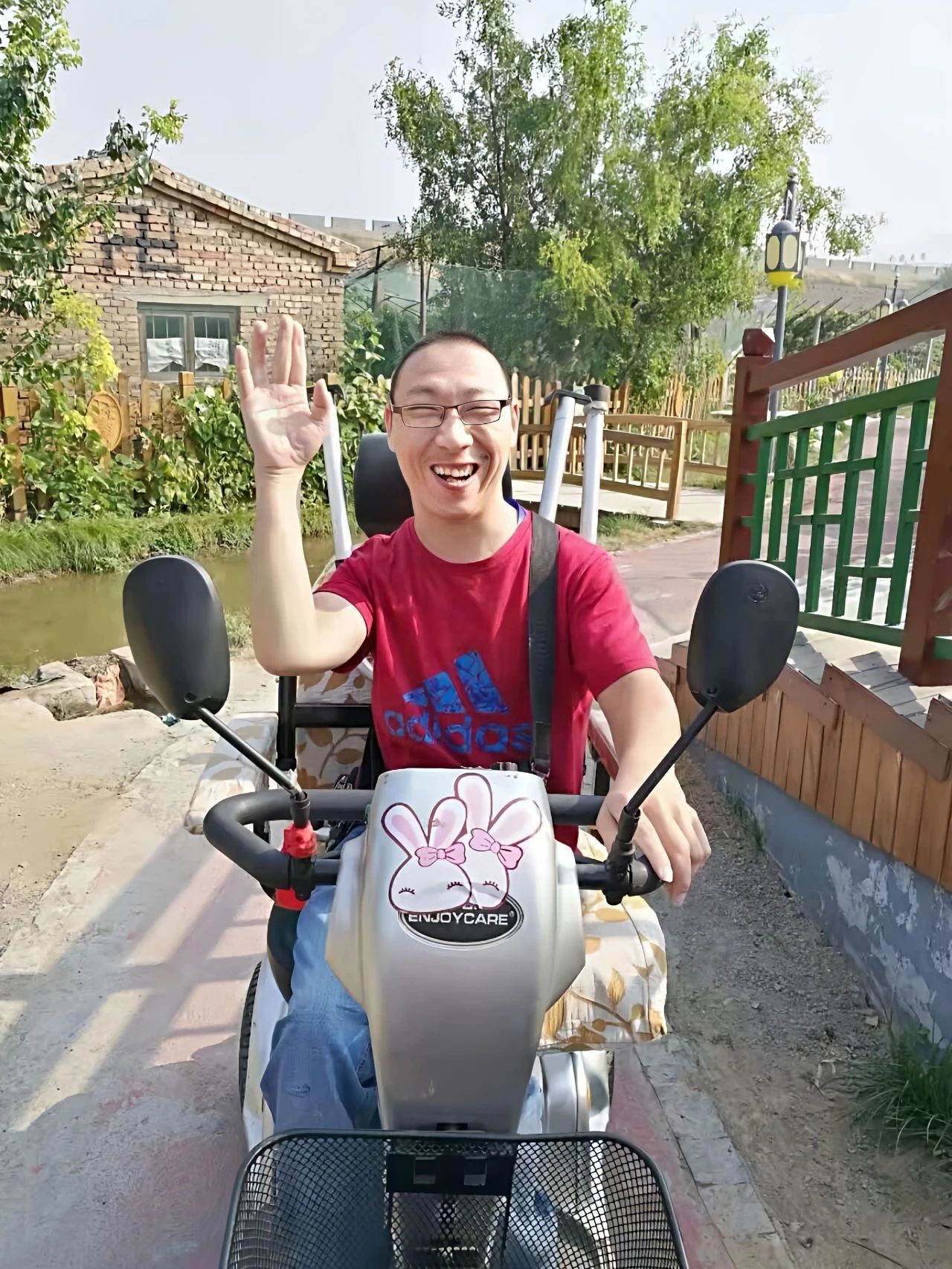 王钢开着电动车高兴地向孙孝荣家走去,孙孝荣是他帮助的残疾人之一。虽然多次去过孙大姐家,可今天他格外兴奋,脸上洋溢的笑容在太阳下愈发灿烂。他知道大姐爱花,爱这多彩的春天。