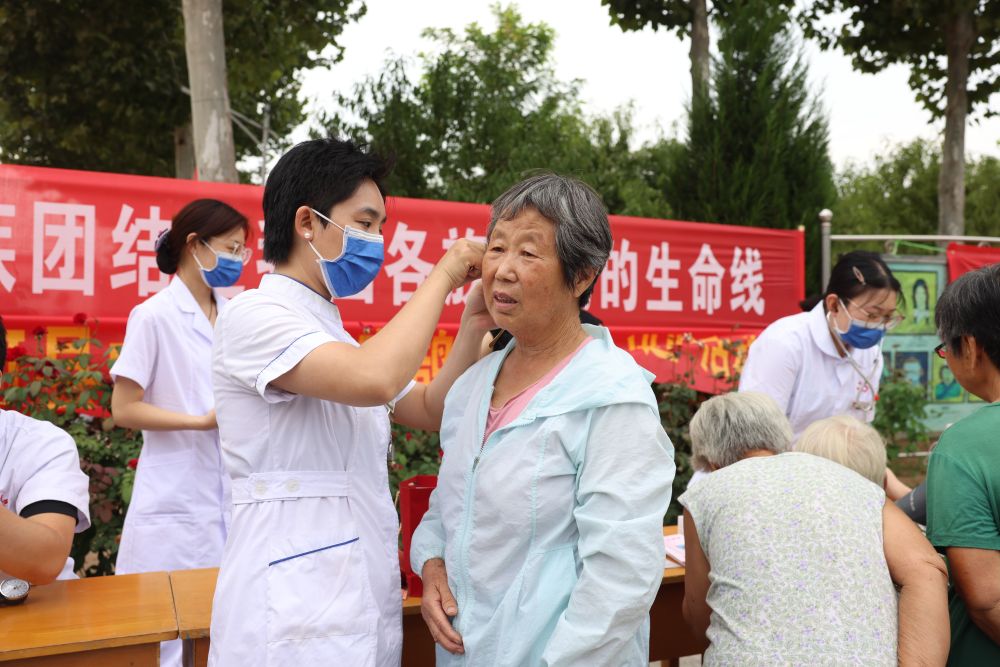↑9月4日,在新河县东董村脱脱文化园,医务人员为群众义诊。