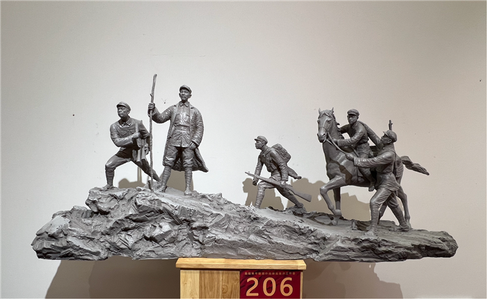展厅内,创作者们以泥土为语、石材为言、金属为思,将对传统与现代的深刻理解,和对社会与个体的独特感悟,融入到雕塑的造型与肌理之中。展览分为三大篇章,分别位于美术馆一至三层:第一篇章“我们所承载的”聚焦历史的厚度、家国的使命与集体的记忆,如作品《启航》《征程之骑映山河》等,以石材、金属等材料凝固民族面貌与革命精神;第二篇章“我们所感受的”着眼于生活的温度以及思维的表达,《使命》《平凡的高度》等作品展现出青年艺术家对现实生活的细腻捕捉;第三篇章“我们所构想的”则指向未来探索与观念实验,运用新媒体、互动装置等创新手法,突破传统雕塑边界。