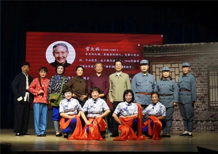 官大妈(1896—1987),本名刘大娟,容城孙村人,后嫁至小先王村。一位普通的农村党员,抗日时期做“堡垒户”,1944年被晋察冀边区政府授予“拥军模范”称号。她的故事,在纪念抗战胜利80周年之际,被编剧曹宏君采编入戏,他说河北梆子要焕发生命力,不能只演陈年老戏让戏路变窄,要紧跟时代,根植燕赵,守正创新,让新戏也在梆子长河中扬帆。于是,《抗战英模官大妈》“破茧成蝶”。