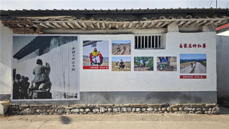 在阜平县易家庄村,革命摄影家刘峰作品《中国土地法大纲》张贴在当年拍摄地原址,与今日摄影家用镜头记录的《易家庄种红薯》并置。历史的厚重与当下的鲜活相互映照,让前来参观的万宝庄小学师生们,在影像的对比中直观地感受到了红色江山的来之不易与时代发展的日新月异……