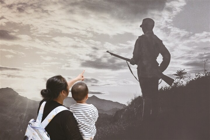 日前,“光影铸剑——沙飞镜头中的抗战记忆”展览在中国人民革命军事博物馆举行。此次展览以“时间线+专题”的方式展出沙飞经典摄影作品近300幅。图为观众在“光影铸剑——沙飞镜头中的抗战记忆”展览现场参观。