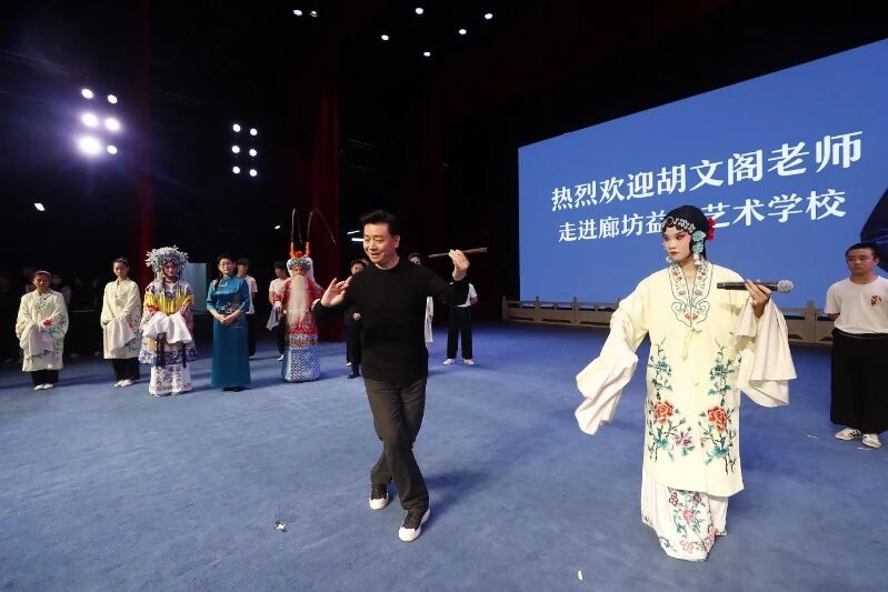 在廊坊益田艺术学校,京剧名家、国家一级演员胡文阁为师生带来一场生动的戏曲艺术交流。活动分为节目展示和现场指导两个环节。胡文阁对学生表演进行了细致点评与专业示范,围绕戏曲表演技巧与舞台呈现展开深入指导,激发了广大师生对传统戏曲艺术的热爱与传承热情。