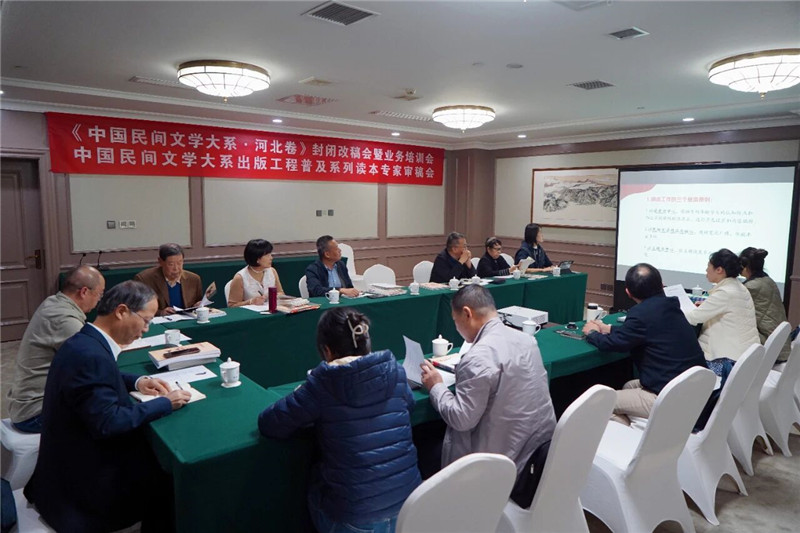 为深入贯彻《关于实施中华优秀传统文化传承发展工程的意见》要求,推动《中国民间文学大系·河北卷》编纂工作优化升级,10月16日至20日,《大系·河北卷》封闭改稿会暨业务培训会在石家庄市正定县举办。本次会议由中国民间文学大系出版工程编纂出版工作委员会、河北省文联主办,中国文联出版社、河北省民协承办。中国民协分党组成员、副秘书长、一级巡视员侯仰军,中国民协副主席、黑龙江省文联副主席、大系出版工程学术委员会委员郭崇林,河北省文联党组成员、副主席任源,中国民协顾问、河北省民协名誉主席郑一民,大系出版工程学术委员会委员刘晔原,大系出版工程编纂出版工作委员会专家于学斌、李丽丹,以及《大系·传说·河北卷·邯郸分卷》《大系·传说·河北卷·保定分卷》主编、编委等参加会议。