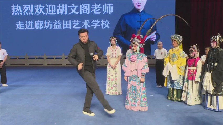 10月11日上午,梅派京剧第三代传人、京剧表演艺术家胡文阁走进廊坊益田艺术学校,观看学生们的演出并进行指导。互动环节中,胡文阁老师耐心解答,亲自示范指导孩子们的动作和唱腔,结合《秦香莲》《贵妃醉酒》等经典剧目,现场示范表演了经典选段,展示了梅派艺术的独特魅力。