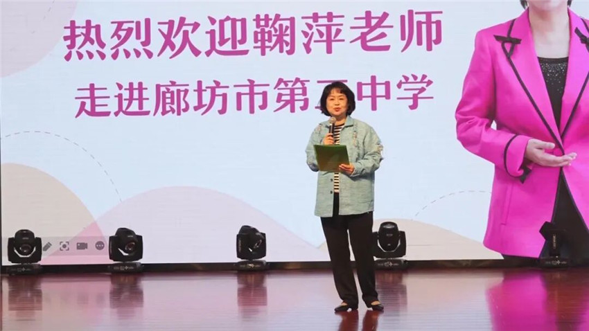 中央广播电视总台体育青少节目中心主持人、少儿频道节目部主持人组组长鞠萍来到廊坊市第二中学为播音专业学生开展现场专业指导,赋能学子成长。鞠萍认真观看了同学们的节目,并耐心传授发声技巧、舞台仪态等,内容全面细致,让学生们受益匪浅。