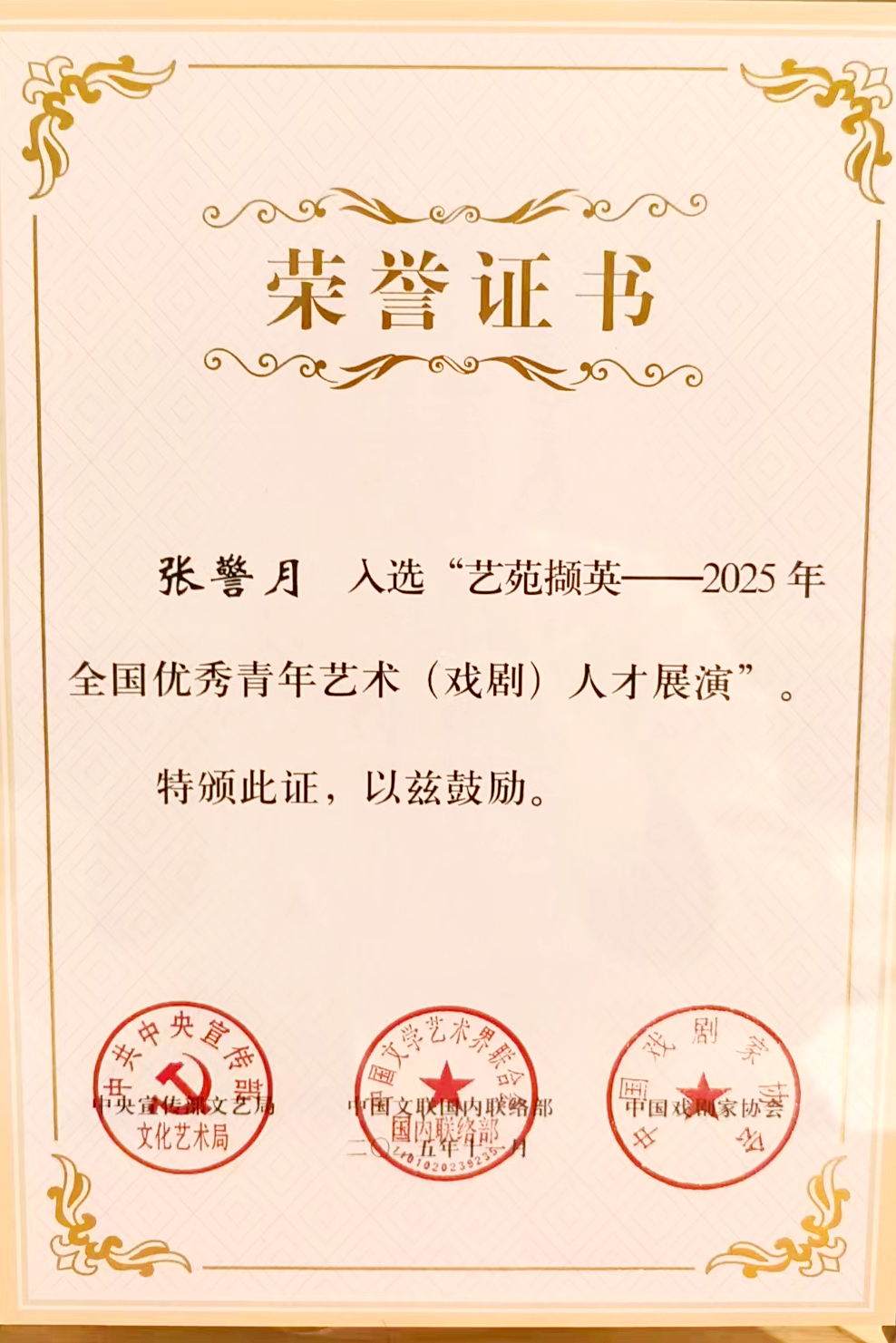 11月13日至16日,由中宣部文艺局、中国文联国内联络部和中国戏剧家协会共同主办的“艺苑撷英——2025年全国优秀青年艺术人才(戏曲武戏、丑戏)展演”,在北京梅兰芳大剧院成功举办。经河北省剧协推荐,来自河北省河北梆子剧院演艺有限公司的张警月和张家口华梅少年晋剧团的胡俊龙入选本次展演。