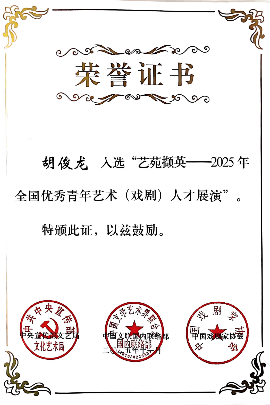 入选证书