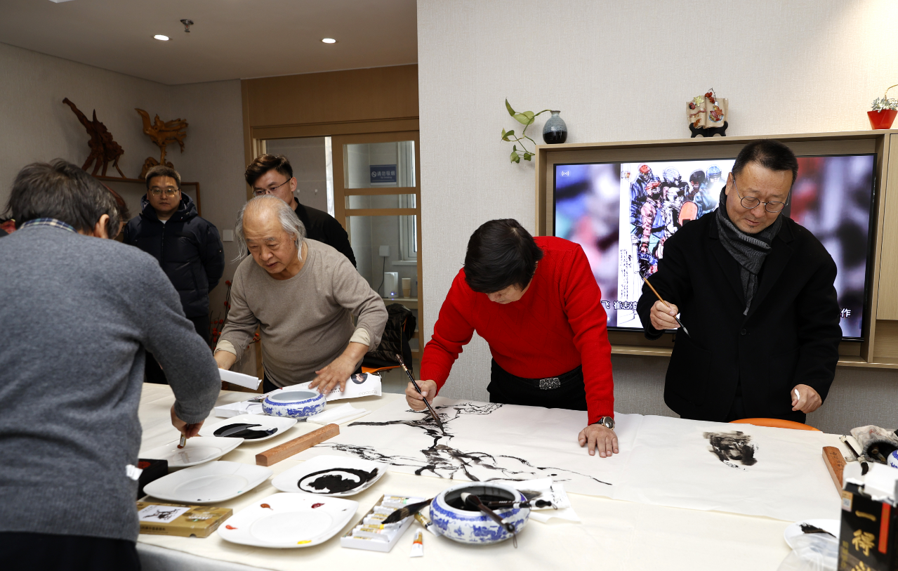 活动现场,三地书画家以墨会友,挥毫创作冬奥场馆雄姿、崇礼山川盛景及塞外风情作品,彰显北方艺术雄浑气度与三地文化特色,体现对共同文化根脉的认同和“瓣瓣同心”的协同理念。