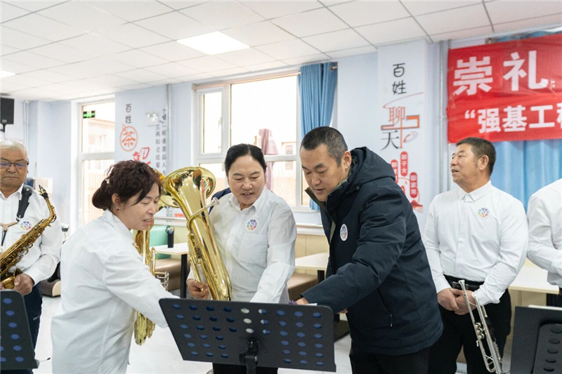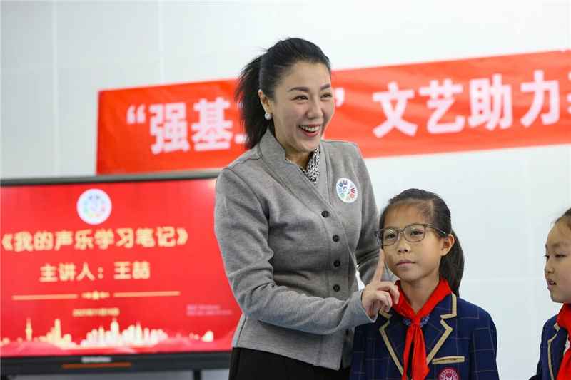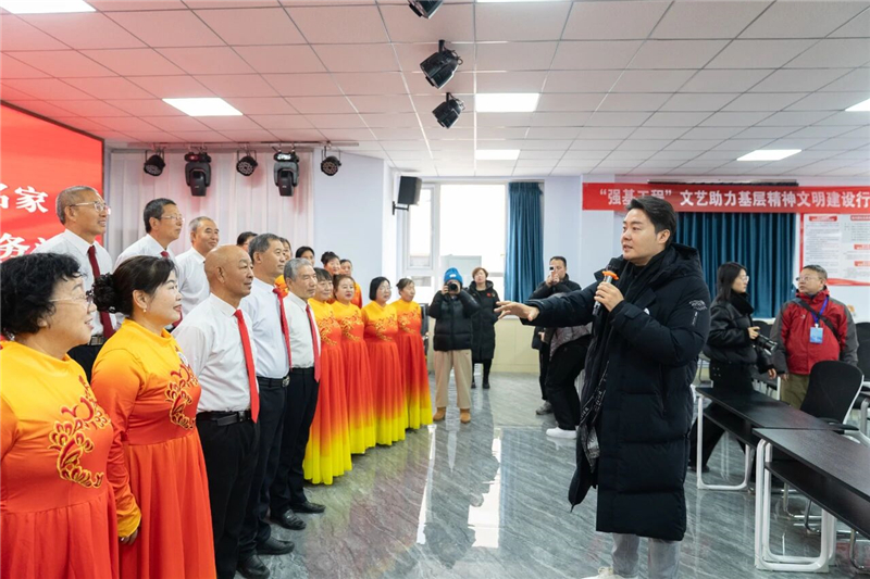 培训期间,中国文联文艺志愿服务中心邀请了文艺志愿者、中央广播电视总台少儿频道主持人鞠萍、中央音乐学院教授王喆、国防大学军事文化学院副教授刘芳,以小分队形式走进崇礼区第一实验小学,开展“强基工程”文艺志愿服务授课辅导。鞠萍从吐字归音、情感表达到舞台台风等方面进行了专业朗诵指导,示范引导孩子们用语言传递文字背后的情感与力量;王喆现场为学生们传授科学的发声技巧,通过互动练习激发他们对音乐的兴趣,启迪着孩子们对声乐艺术的热爱;刘芳则从基础动作入手,纠正学生们的舞蹈手位和步伐,激发孩子们对舞蹈的热爱。与此同时,中国歌剧舞剧院男高音歌唱家张英席、中国音乐家协会和爵士乐学会一级会员吴云南组成另一支小分队走进崇礼区裕兴路社区。张英席从气息运用、音准把握到多声部融合为裕兴路童心歌舞团进行专业指导,吴云南则围绕崇礼区新农民艺术团的演奏曲目,对节奏把控、音色处理和情感表达进行重点辅导。现场群众纷纷表示,能在家门口接受艺术家们高水平的指导机会难得,他们不仅学到了专业知识,还提升了演唱水平,感到收获颇丰。