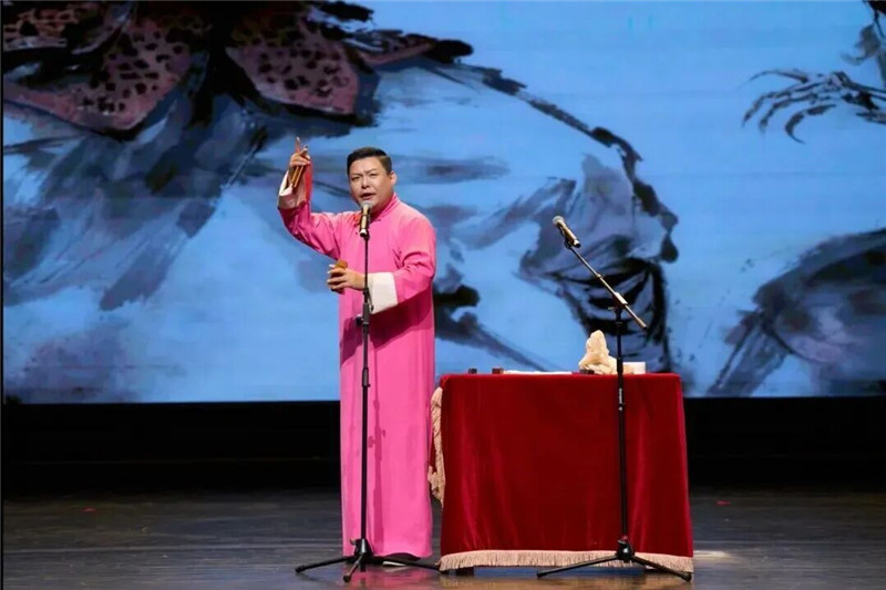 本次活动是《“燕赵风华”河北民间文艺资源转化发展项目》的重要组成部分,作为“燕赵风华”河北民间文艺活态展演的第四场演出,展演在《燕赵风》的恢宏乐声中拉开帷幕。鼓曲联唱环节汇集沧县木板大鼓《耗子摔跤》、梨花大鼓《劝人方》与西河大鼓《要酒菜》等多支非遗代表性曲种,韵味各具,接连登场。相声《学双簧》、干嗑《王婆骂鸡》节奏明快、语言诙谐,具有浓郁的地方文艺特色;快板书《三打白骨精》、段派评书《朱元璋招亲》和四块瓦说唱《三打祝家庄》则用曲艺的形式生动叙述了不同的历史故事和神话传说,形式新颖、引人入胜;而京东大鼓《霸王别姬》则用苍劲的唱腔,深沉的情感再现了一段悲壮的历史典故。最后以省曲协主席、乐亭大鼓国家级非遗传承人何建春领衔演绎的节目《双锁山》压轴,将全场演出推向高潮。