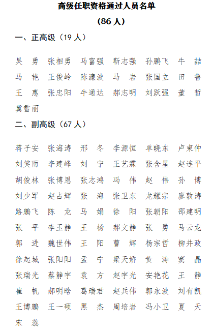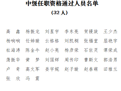 经河北省艺术系列(新文艺群体)高级、中级任职资格评审委员会评审,认定以下人员具备正高级、副高级、中级专业技术职务任职资格,现对评审通过人员名单予以公示: