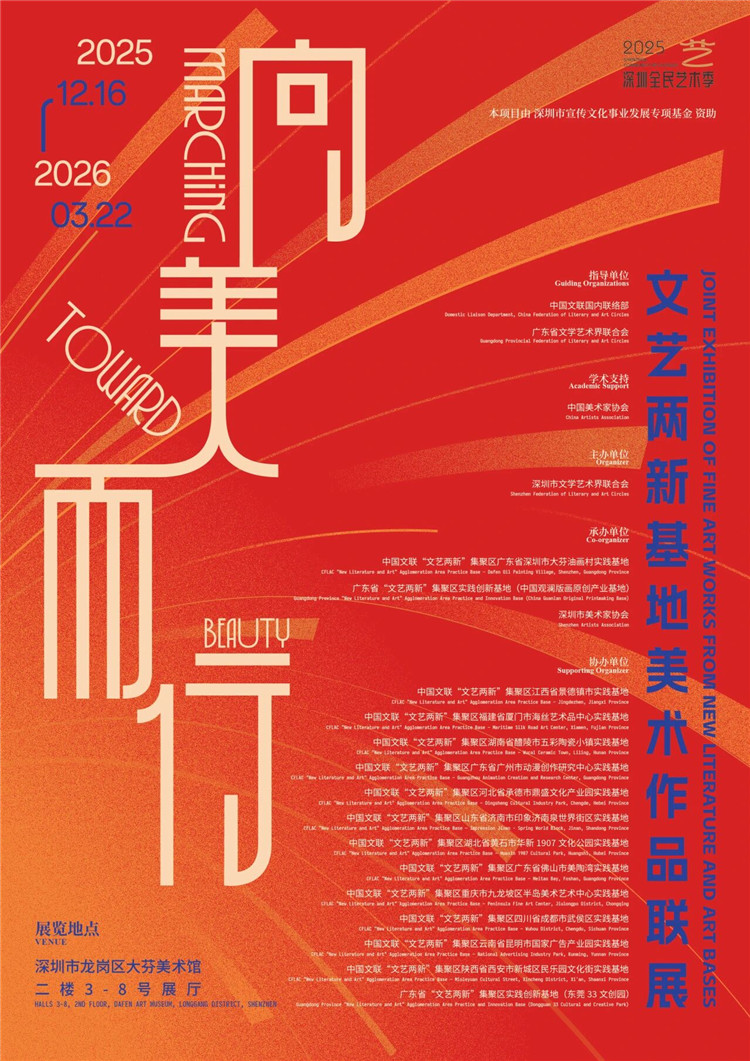 我们期待,通过这场展览,不仅搭建起跨地域、跨基地的艺术交流平台,更能进一步团结凝聚广大 “文艺两新” 工作者听党话、跟党走,强化深圳在 “文艺两新” 工作中的示范引领作用。让艺术成果赋能湾区高质量发展,让文化力量助力先行示范区建设,让 “文艺两新” 的创新活力在新时代文艺园地中充分涌流。