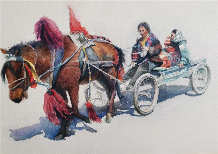 计忆 《赶大集》 35cm×50cm 纸本水彩 2015