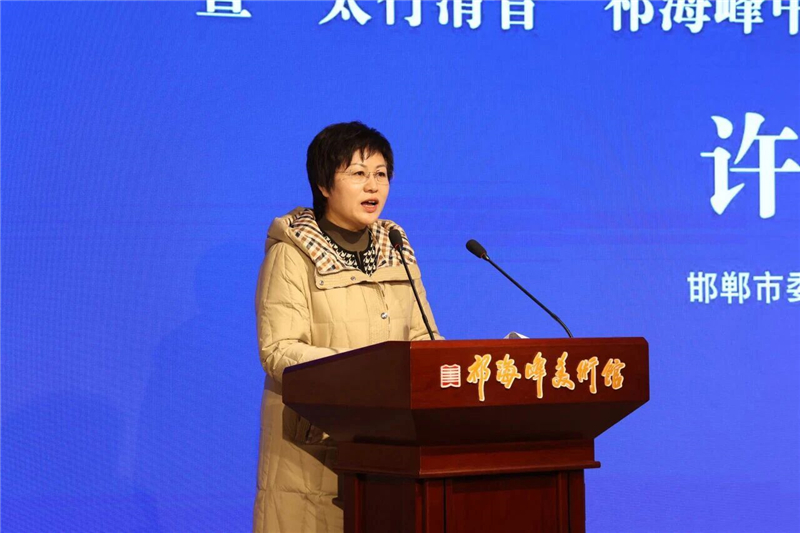许红琳代表邯郸市委、市政府致欢迎辞。她表示,邯郸作为国家历史文化名城,八千年文脉绵延不绝,滋养了一代又一代心怀家国、深耕艺坛的文化名人。祁海峰美术馆(武安市美术馆)的落成开馆,深植于祁海峰对故土的深情,将成为邯郸市又一文化新地标,在艺术展览、文化交流和美育普及等方面发挥出重要作用。希望武安以此次开馆为契机,充分发挥辐射带动作用,讲好邯郸文化故事,为加快打造著名文化旅游城市作出新的更大贡献。