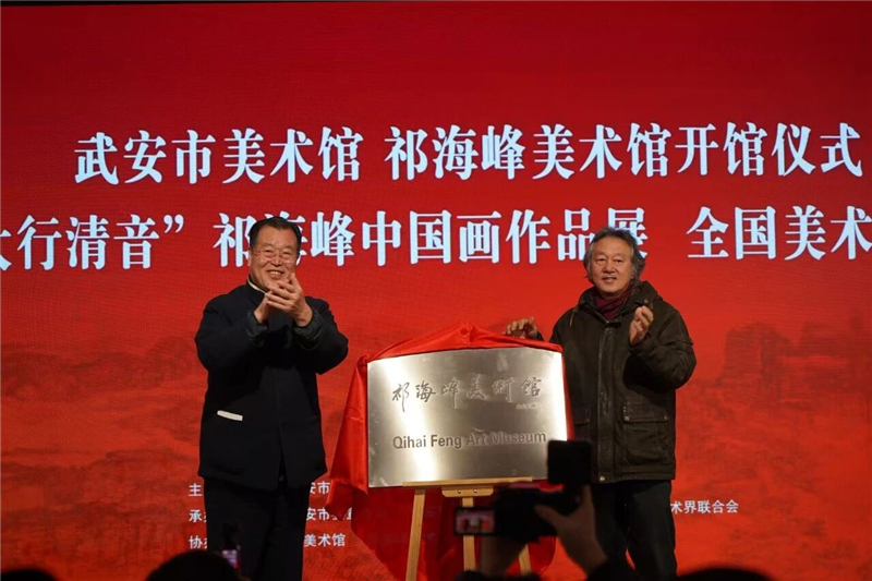 中国文联副主席、河北省文联主席边发吉,中国美协副主席马锋辉为“祁海峰美术馆”揭牌