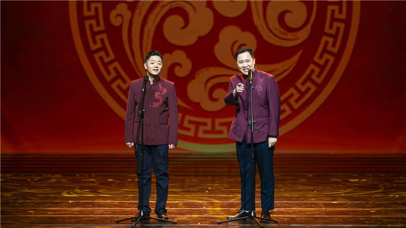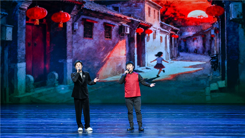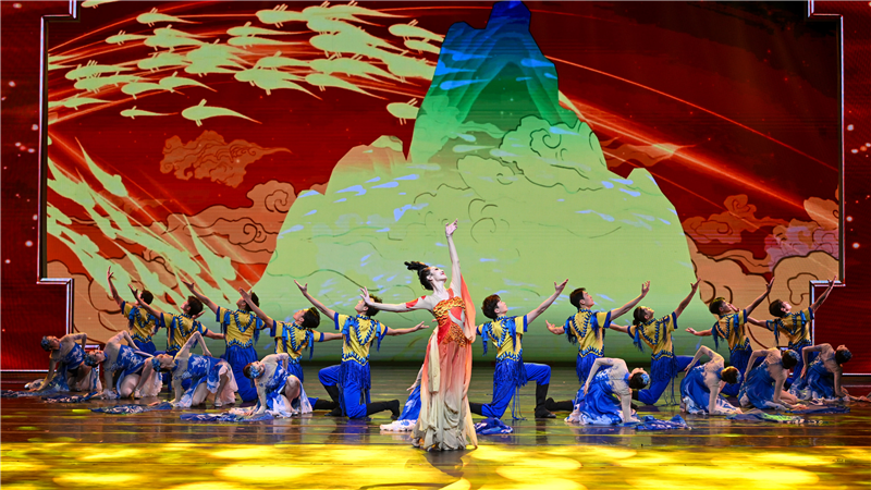 第二篇章是千年同脉流芬芳。舞蹈《丝路·胡旋》将唐代风靡极盛的胡旋舞融入当代审美表达,让观众走进西域乐舞绘制的丝路长卷;中央民族歌舞团演员朱韬、孔庆学演唱的歌曲《寻迹千年》,展现出中华文明多元一体的厚重与辉煌;北京曲艺家协会主席、中国广播艺术团演员李伟建、北京曲艺团演员亢立飞表演的相声《笑动万家》,展现了京津冀人缘相亲、文脉相通的深厚情缘。