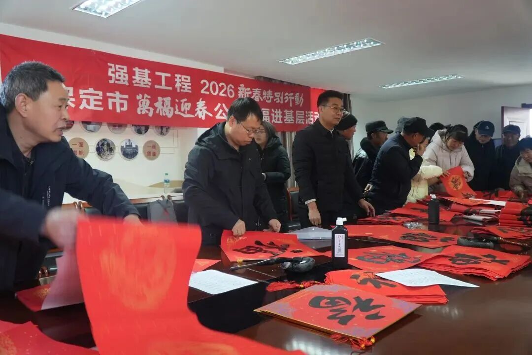 1月26日,由保定市委办公室、保定市文联、阜平县委宣传部联合主办,保定市书法家协会、阜平县文联承办的“强基工程2026新春特别行动——保定市‘万福迎春’公益送福进基层”活动圆满举行。市、县两级10余位书画家分赴阜平县王林口镇辛庄村、龙泉关镇平石头村,以笔墨传情,为基层群众送上满满的新春祝福。