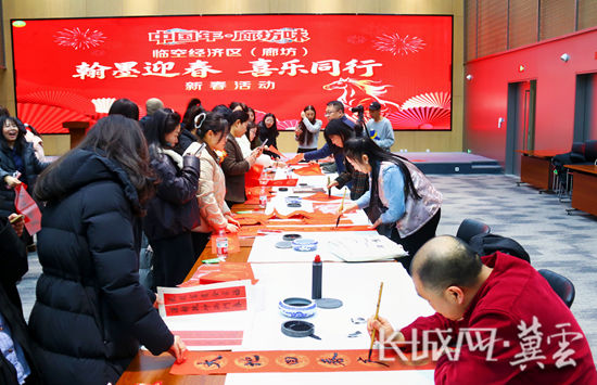 长城网·冀云客户端讯(吕艳静)新春将至,年味渐浓。近日,临空经济区(廊坊)“翰墨迎春 喜乐同行”文艺志愿服务活动在热烈祥和的氛围中举行。临空经济区(廊坊)管委会各(办)局、各中心、派驻机构,河北临空集团各(部)室、各分子公司,以及临空经济区(廊坊)驻区企业家、企业员工代表齐聚一堂,共同参与这场充满文化气息与温情互动的文化盛宴。