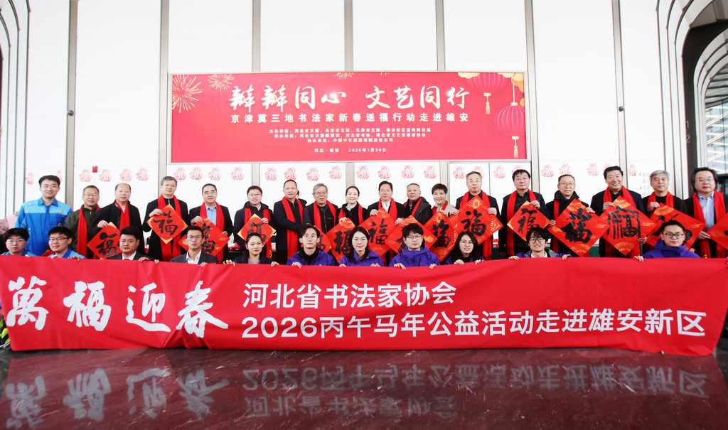 河北日报客户端讯(见习记者郝金钰)1月30日,由河北省文联、北京市文联、天津市文联与雄安新区宣传网信局主办,中国中化集团有限公司协办的“瓣瓣同心 文艺同行”——京津冀三地艺术家新春送福行动和文艺慰问演出在雄安新区中国中化大厦举办。三地书法家齐聚雄安,为疏解央企干部职工、建设者及居民送上新春祝福。