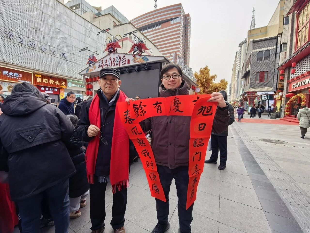 与此同时,河北省书法名家送春联活动同步开展。省企业(行业)文联主席、省书法家协会副主席范硕、省戏剧家协会副主席贾吉庆等书法名家现场挥毫,以笔墨传递温情,为游客免费书写春联。一副副吉祥红联,不仅寄寓着对新春的美好祝愿,也成为一份份匠心独运、情意绵长的新春纪念。