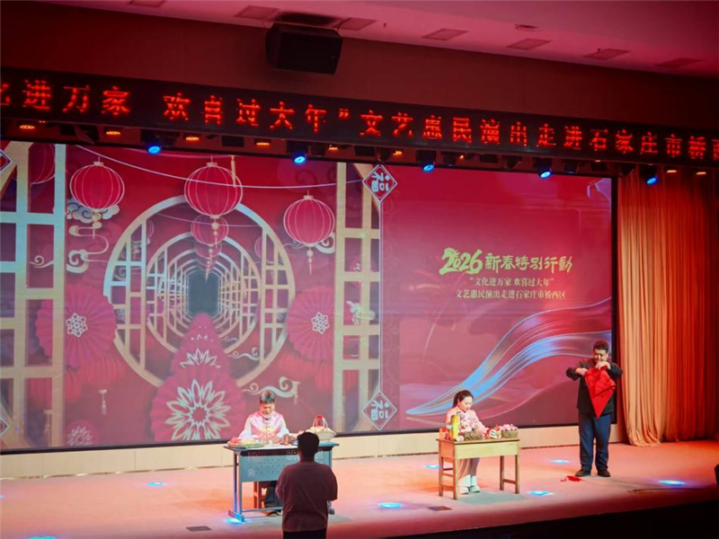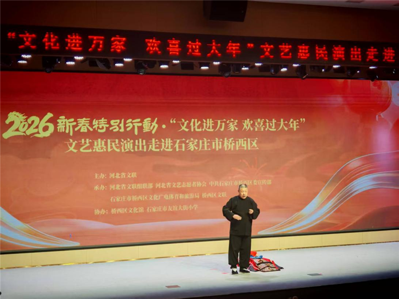 春临校园添喜色,文艺惠民暖童心。2月8日,由河北省文联主办,河北省文联组联部、河北省文艺志愿者协会、中共石家庄市桥西区委宣传部、石家庄市桥西区文化广电体育和旅游局、桥西区文联承办的“强基工程”2026新春特别行动“文化进万家 欢喜过大年”文艺惠民演出,在友谊大街小学精彩上演。省文联党组成员、副主席张海英,桥西区委常委、区委宣传部部长容旭辉等领导现场出席活动。40余名文艺志愿者带着精心编排的节目走进校园,与师生欢聚一堂,在缤纷的艺术盛宴中喜迎新春,让校园洋溢着浓浓的节日氛围。
