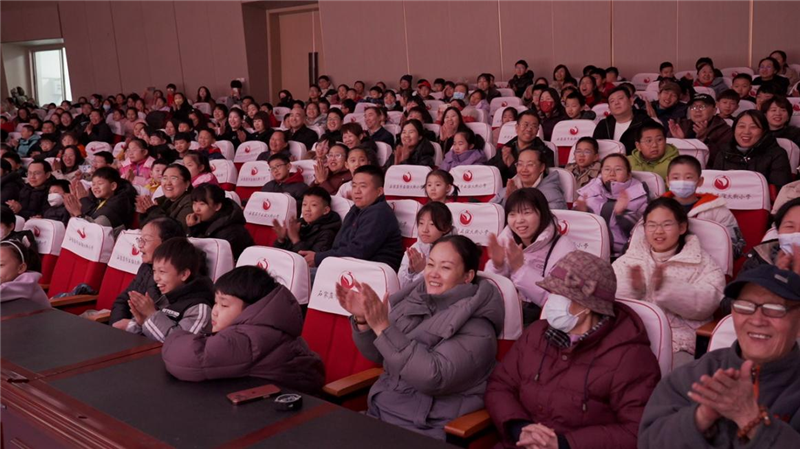整场演出在张娜带来的《开场舞》中活力启幕,孩子们的欢呼声与掌声此起彼伏,为演出拉开了喜庆的序幕。魏佳倾情献唱歌曲《跟你走》,嘹亮深情的歌声传递出奋进的力量,让师生们沉浸在动人的旋律之中;郭燕清带来的南花园民间戏法《五彩缤纷》精彩绝伦,变幻莫测的戏法手法引得孩子们目不转睛、连连惊叹;郭儒屹演唱的《无名的人》,用温暖的歌声歌颂平凡中的坚守,让孩子们在旋律中体会奋斗的意义;蒋昕延的独舞《天地间》舞姿曼妙、意境悠远,将舞蹈的艺术之美展现得淋漓尽致;付中盼带来的休门吹歌《打枣》,清脆婉转的吹打乐声萦绕耳畔,经典的民间曲种让师生们领略到非遗艺术的醇厚韵味。李哲、刘磊搭档演绎相声《笑舞欢歌》,二人妙语连珠、包袱不断,幽默风趣的表演让现场笑声不断,将演出气氛推向高潮。赵璇登台演绎河北梆子《大登殿》经典选段,醇厚的唱腔、传神的表演,尽显梆腔艺术的独特魅力,让孩子们感受到传统戏曲的博大精深;花之蕾艺术团带来的模特表演《关关雎鸠》,将古典美与现代美完美融合,演员们优雅的步伐赢得满堂喝彩;王振国演唱的《刺痛的玫瑰》,旋律动听、情感真挚,让现场沉浸在唯美的艺术氛围里。赵海贞、王丽霞、赵成龙带来的面塑、老面馒头《巧手捏万象》与剪纸骏马《送福》,是本次演出的一大亮点。艺术家们现场巧手创作,一个个栩栩如生的面塑形象、一张张精致喜庆的骏马剪纸跃然眼前,孩子们争相围观,近距离感受传统民间手工艺的神奇,现场还将创作的福字剪纸与精美面塑送给孩子们。演出在魏佳、姜莎联袂带来的歌舞《答卷》中圆满落幕,激昂的旋律、动感的舞姿,传递出砥砺奋进、书写美好未来的昂扬姿态,也为整场文艺演出画上了完美的句号。