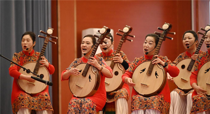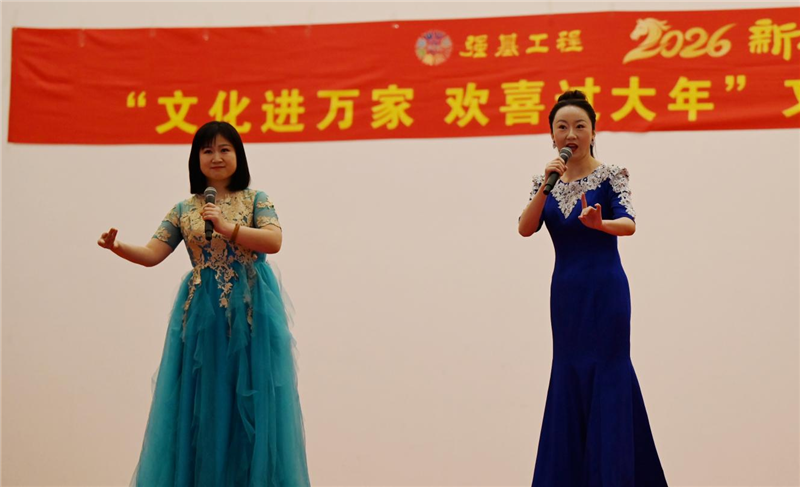 河北省河北梆子剧院一级演员、第25届中国戏剧梅花奖获得者吴桂云重磅登台,倾情演绎河北梆子《钟馗》《大登殿》经典选段,她以醇厚高亢的嗓音、精湛传神的表演,尽显梆腔艺术的深厚底蕴与磅礴气势,赢得全场阵阵喝彩。演出尾声,省歌舞剧院独唱演员程龙带来《特别的爱给特别的你》《奉献美好》两首歌曲,温情婉转与豪迈激昂的曲风交织相融,既传递出真挚动人的情感,又唱响了对美好未来的无限憧憬与砥砺奋进的昂扬姿态,为整场文艺演出画上圆满句号。