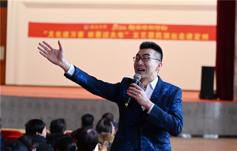 本次文艺演出在欢快喜庆的舞蹈《新年好》中正式拉开帷幕,灵动的舞步与明快的节奏瞬间点燃现场氛围。青年歌手李姗莹倾情献唱歌曲《开元风华》,婉转悠扬的旋律如诗如画,让观众沉浸在浓郁的艺术意境之中。省杂技家协会吴贺功带来新古装魔术表演,一个个奇幻莫测的瞬间接连上演,引得现场观众目不暇接、连连称奇,沉浸式感受魔术艺术的独特魅力。省曲艺家协会的王博鹏、刘有凯搭档演绎相声《一马当先》,二人妙语连珠、包袱密集,将现场气氛推向高潮,阵阵欢笑与热烈掌声此起彼伏。歌曲《朝阳沟(定州版)》,作品巧妙融入定州地域风情与文化元素,生动唱出了定州大地的鲜活气息与深厚人文底蕴。定州东坡秧歌剧团登台献演秧歌戏《定州秧歌特色选段借灯光》,演员们以地道醇厚的唱腔、鲜活生动的表演,将定州秧歌这一非遗剧种的独特魅力展现得淋漓尽致,让观众近距离感受传统戏曲的文化根脉。杨健卫带来京东大鼓《长寿村》,铿锵有力的鼓点搭配生动诙谐的唱词,让这一经典曲种在新时代焕发出别样生机与活力。