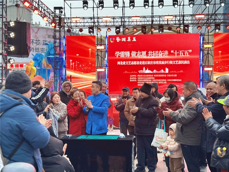 演出在石家庄市石门帅姥文艺志愿服务队表演的舞蹈《开门红》中拉开帷幕,喜庆的锣鼓和红绸承载着满满的新春祝福;中国戏剧梅花奖获得者、河北梆子表演艺术家刘凤岭带来的河北梆子《徐策跑城》选段“老徐策站城楼”,石家庄市京剧艺术中心优秀青年演员牛腾演唱的京剧《坐寨》选段“将酒宴摆置在聚义厅上”,让现场戏迷朋友连连感叹大饱耳福;青年相声演员王博鹏、刘有凯表演的《开心一刻》,包袱密集,欢笑声与掌声不断;青年相声演员高帅表演的快板《学雷锋》紧扣活动主题,弘扬雷锋精神,让奉献、友爱、互助、进步的时代新风深入人心;魔术师陈建、吴贺功分别表演的《三仙归洞》《筒里乾坤》,频频到台下互动,让观众近距离感受魔术的神奇魅力;河北工程技术学院青年声乐教师闫晓不仅演唱了歌曲《春风十万里》,还带领全场观众大合唱《学习雷锋好榜样》,重温振奋人心的熟悉旋律;青年歌手王铁石演唱的《遇见石家庄》,让当地群众在歌声中感受家乡之美;石家庄市淑芬艺术团文艺志愿服务队的拉花表演《打春鞭》,彩鞭翻飞,舞出了滹沱河畔迎春耕、祈丰年的期盼,也舞出新时代石家庄的昂扬气象与浓浓乡土深情;文艺志愿者满玥带来的琵琶独奏《盛世国乐》,气势恢宏,尽显中华传统器乐的独特魅力;演出在李雄哲、高婕与石家庄市霓裳艺术团文艺志愿服务队共同带来的歌伴舞《志愿中国》中落下帷幕。