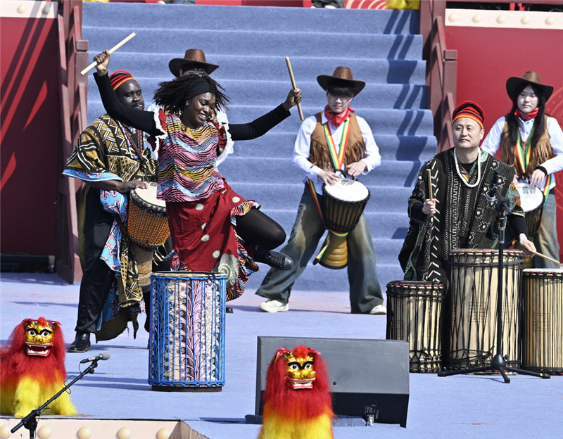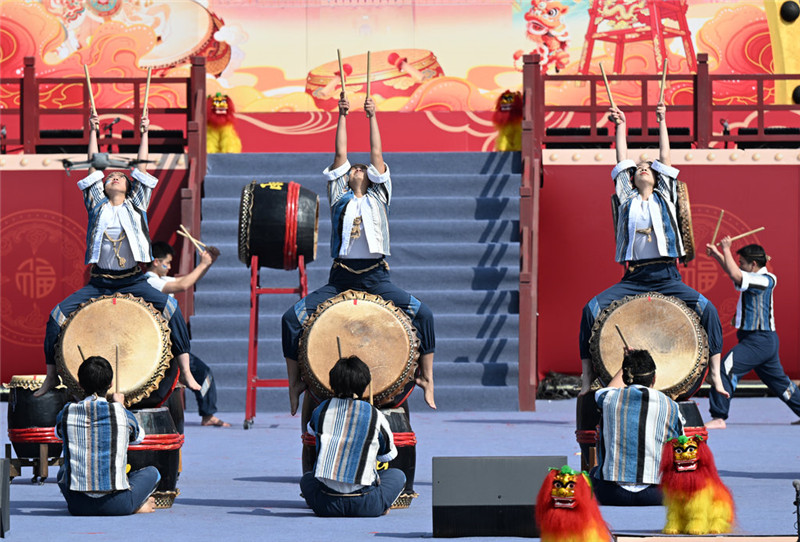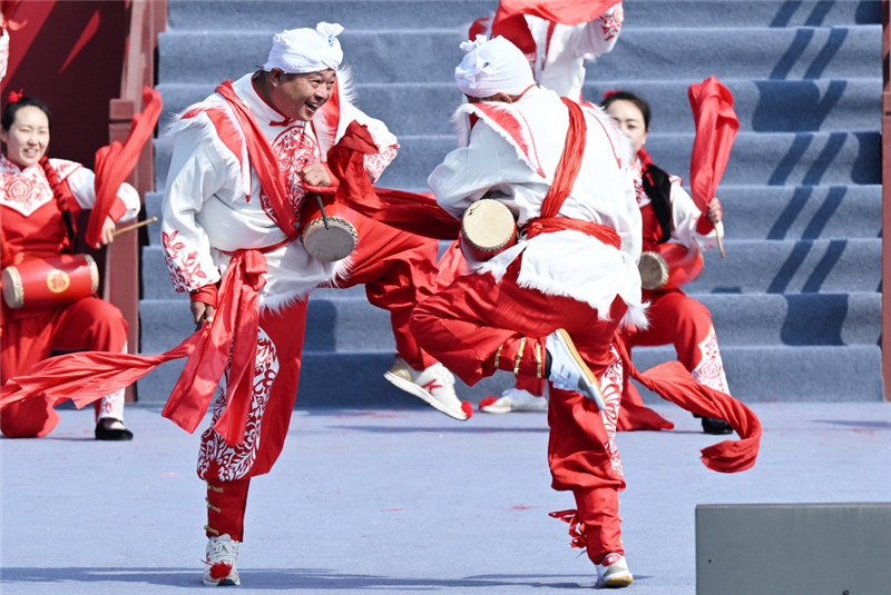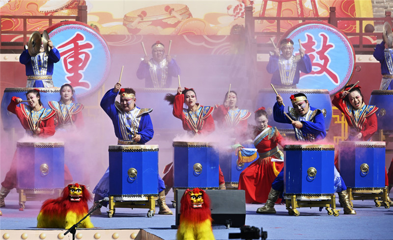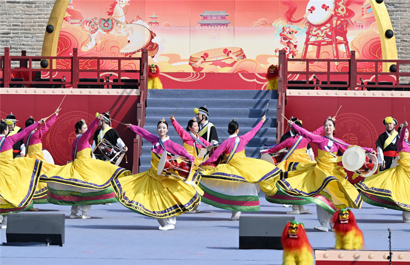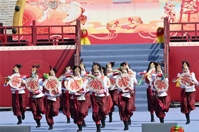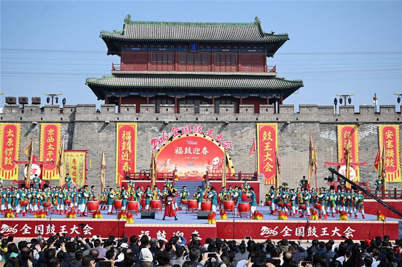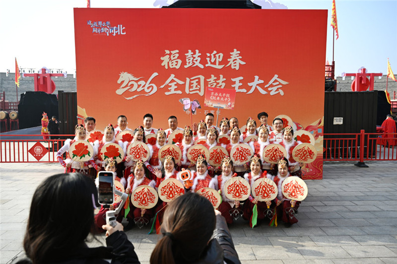 3月15日,来自北京的京西太平鼓队在一起合影留念。