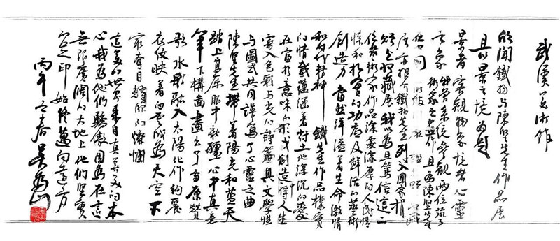 中国美术家协会理论与策展委员会主任尚辉认为,铁扬先生通过绘画不断重现脑海中曾经的中国乡土,历经一次又一次突破,作品的心境更加纯粹,也更具有表现性。陈坚先生的作品有一种淳朴的诗意,这种淳朴是艺术家在繁华城市对人性淳朴的追求,近年来更是通过“光”系列、视觉日记小作品实现了一次次突破。他们并不因为自己的功成名就而停止对艺术的探索,而总是力求在变化之中再次回归于自己的个性。本次展览启发我们去思考中国水彩画和这个民族的血液、和这片肥沃的土壤之间的联系,从而取得对中国美术发展的新的启示。湖南省文联原副主席、湖南省美协原主席黄铁山则亲临现场,对两位艺术家致以赞扬和敬意,他强调,铁扬、陈坚的创作具有中国式的意境和境界,他们的创作饱含生活情感、创新精神、功力基础和全面的艺术修养,两位艺术家通过长期的努力,不断探索着中国画的意境。